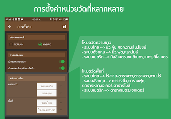 - ใช้แผนที่เพื่อปักหมุดจุดที่ต้องการวัด และเลือกประเภทการวัดและหน่วยการวัด